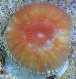 Steve Tyree is maintaining a farmed section of this coral for reeffarmers.com in one of his 125 gallon naturally filtered Tri-Zonal Reef Aquariums. In Steve's captive reef the coral is positoned to recieve moderate light under a 400 watt 20,000 K Radium Metal Halide. Travis believes the coral requires weak currents and moderate to low light. The price is currently $70 per small sized fragment. Each fragment will consist of one adult corallite 10 to 15 mm in diameter.