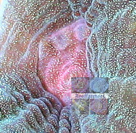 Pink Eyed Favia favus Reeffarmers seed extreme closeup image. Note how the