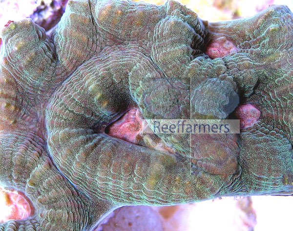 this original colony. The distinctive pink corallite centers |