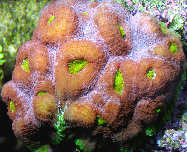 Lime Eye Orpheensis Reeffarmers Corallite Closeup Image. |