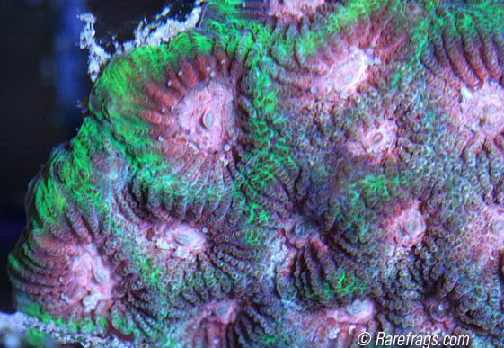 This encrusting massive brain type coral has an incredible pigmentation pattern. The corallite