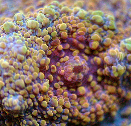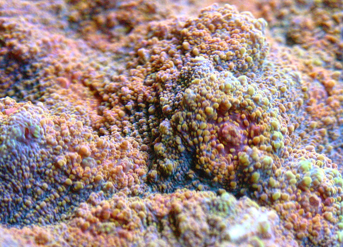 Steve Tyree is maintaining a seed section of this coral for Reeffarmers.com in a 130 gallon Raceway Gyre BiZonal system. This system is naturally filtered with a semi-cryptic zone and a reef flat exposed zone. In Steve's captive reef the coral is positioned to receive weak to moderate light levels from a 400 watt 20,000 K Radium metal halide. The first edition fragment of this coral was auctioned at the 2011 SE-CFM coral show. Reeffarmers sold the second edition for $125.00 on June 22nd 2011 to private collector James Wensil.