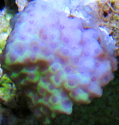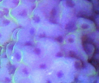 Polyps are colored dark purple/blue. Corallites are slightly depressed in form with
