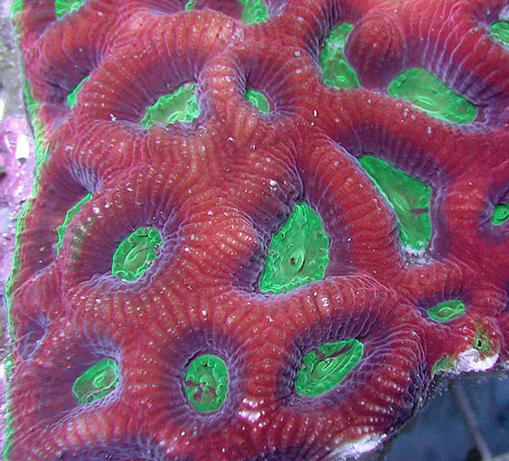 and the upper corallite ridge color. This purple inner wall gives the coral a ringed appearence.