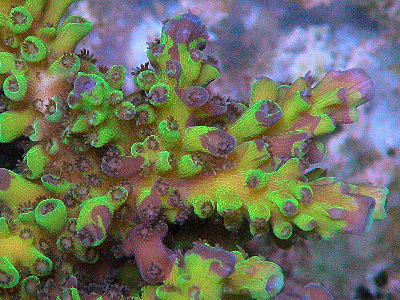 This Acropora divaricata coral originally contained dark blue colored corallites and polyps. |