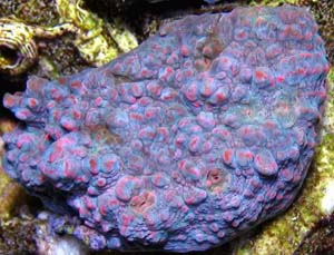 Note greater amounts of pink pigmentation. Polyp mouths are difficult to find and do not have orangish pigments.