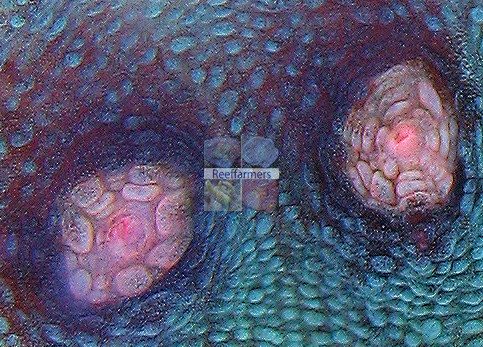 Key Lime Mango Sherbert Mycedium Corallite Closeup Pookstreet Colony. |