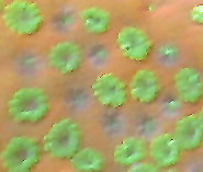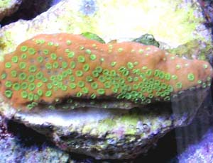 Green Polyped Sunset Coral Fragmment Photo February 2005 (Faded Color Image) |