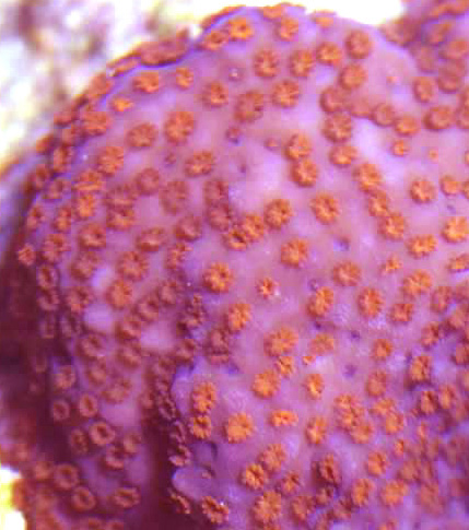 Montipora orientalis Orange Polyps Closeup Photo by Steve Garrett |