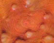 that occur in lines radiating outward from the center of the coral. The leading edge of the coral