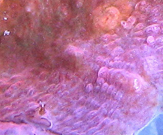 Rainbow Delight Oxypora Edge closeup image. Note the bright pink |