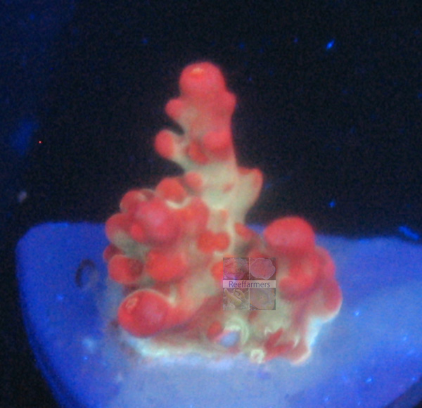 Reeffarmers is maintaining a seed section of this coral in a 8 foot Raceway Gyre BiZonal system. This system is naturally filtered with a semi-cryptic zone and a reef flat exposed zone. In this captive reef the coral is positioned to receive moderate to strong light and moderate water current. The first edition fragment of this coral was sold through Reeffarmers at the Texas Coral Fest spring 2016 to Jerry Harrison. The second edition fragment of this coral was sold through Nice Rack also at the Texas Coral Fest spring 2016 to Jimmy Tran. Recommended list price on April 8th 2016 was $150 for a small sized fragment.
