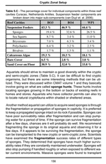 Analyzing the Cryptic Zonal based system is the topic of chapter 7. Aquarist will need to be concerned with some new principals. Are my sponge consumption rates proper for my bioload ? Are sea squirts pumping adequately ? Is pelagic bacterial population or density getting too high ? What are the dissolved organic concentrations in my system ? Some of the older principals are still important, such as monitoring inorganic levels for nitrogen, phosphate and silicate. High nutrients can cause a shift to an algal dominant reef phase.