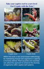 This book is intended to be a standalone manual that introduces and guides the captive aquarist into a zonal based method for reproducing the tropical reef environment. The Cryptic Zonal system was actually developed over 10 years ago in the early 2000’s. It was the culmination of this authors early research into environmental gradients occurring within our captive reefs, and that occur within tropical reef platforms. Environmental gradients are large scale changes in specific physical environmental parameters. They occur across specific distances on natural reefs or within specific areas of captive systems.