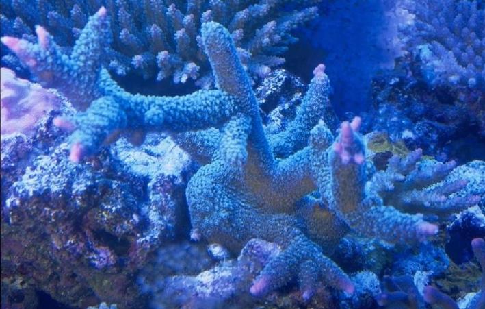 the tourquoise color. Branch tips are purple/tourquoise. Colonies were rarely