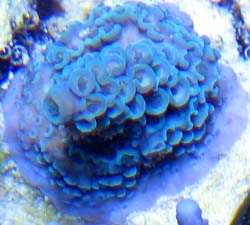 Steve Tyree is maintaining a seed farming section of the Blue Matrix coral for Reeffarmers.com in one of his 125 gallon naturally filtered Tri-Zonal Reef Aquarium. In Steve's captive reef the coral is positoned to recieve strong light under a 400 watt 20,000 K Radium Metal Halide. Current price for a fragment of this coral is $130.00. Due to the corals slow growth rates and spectacular qualities.