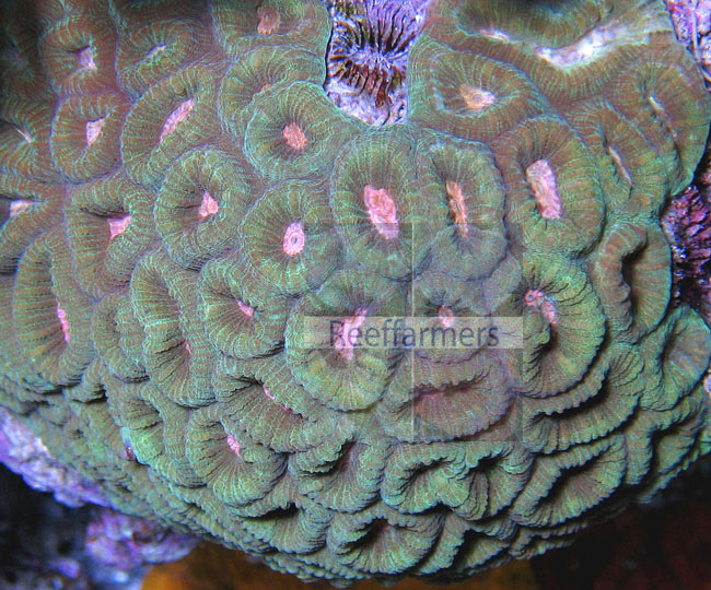Pink Eyed Favia favus Reeffarmers seed extreme closeup image. Note how the
