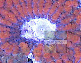 Reeffarmers acquired a colony of this coral from Clint at Diamonds in the Reef. We split our colony with a private collector located in Los Angeles. Clint has been working directly with a collector in Sulawesi Indonesia. That collector had been holding this coral for a few months prior to Clint importing it directly. The corals marketing name was coined by Clint. This particular coral was adapted to captive systems when Reeffarmers had acquired it. The coral also fragments very well and Reeffarmers will be producing captive grown fragments of this coral for years. It has maintained its pigmentation very well. Reeffarmers currently believes this might be a Favia rotumana species coral.