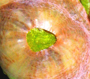 Lime Eye Orpheensis Reeffarmers Corallite Closeup Image. |