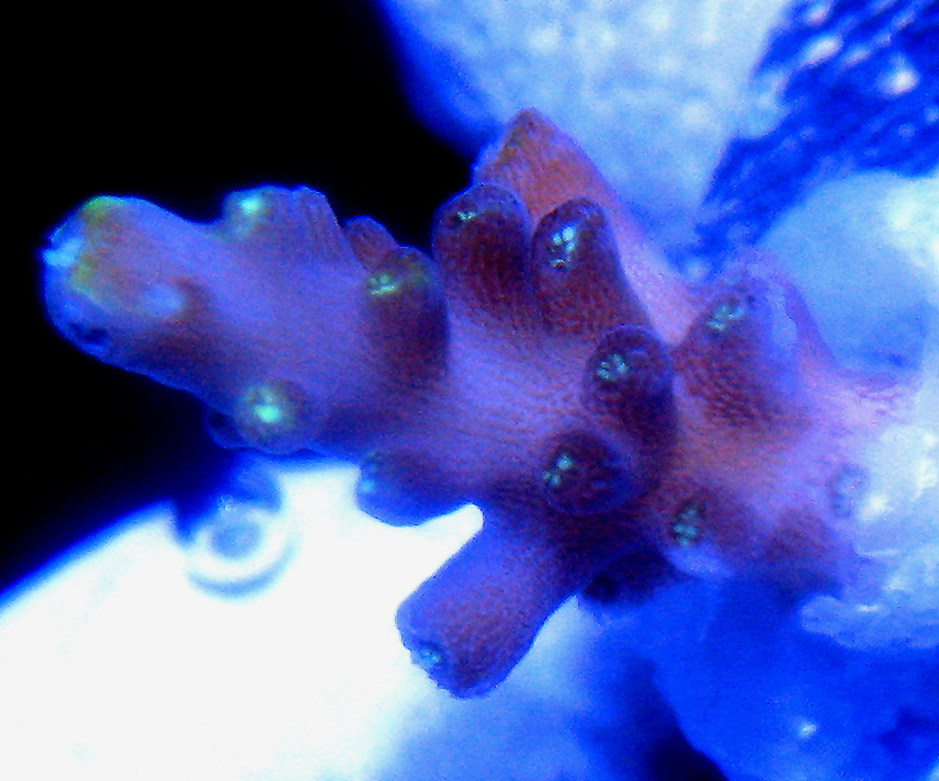 Steve Tyree is maintaining a seed section of this coral for Reeffarmers.com in a 8 foot Raceway Gyre BiZonal system. This system is naturally filtered with a semi-cryptic zone and a reef flat exposed zone. In Steve's captive reef the coral is positioned to receive moderate to weak light levels from a 400 watt 20,000 K Radium metal halide. The first edition fragment of this coral was sold privately.