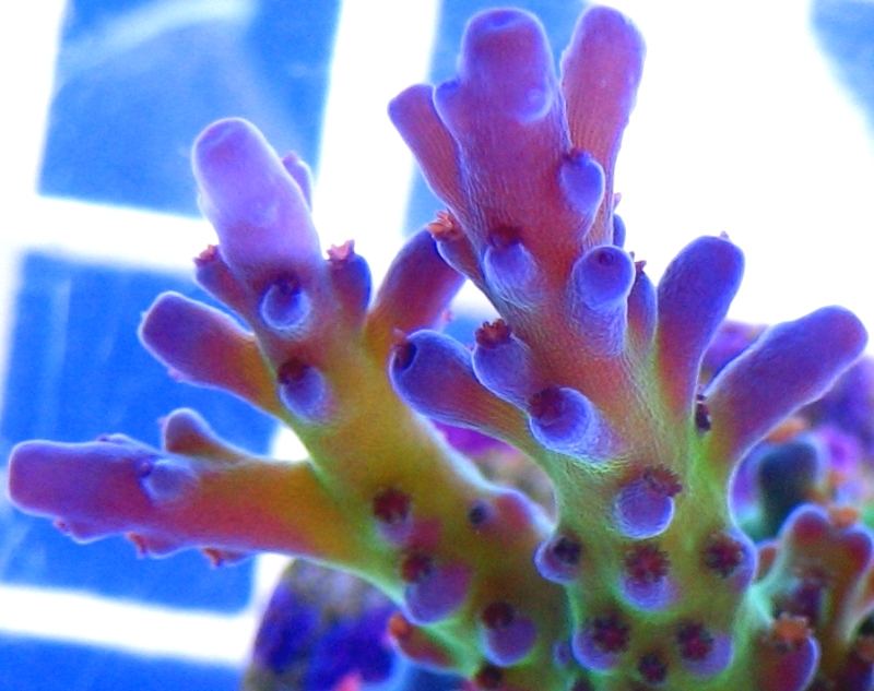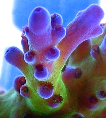 This coral was acquired during a one week layover in Atlanta. We were returning from our first Virginia Beach coral show and decided to setup shop in Atlanta for a few days. Well a few days turned into a week. Our seed came directly from Rit at the Atlanta Aquarium reef store (atlaquarium96@aol.com). Rit acquired the original colony from an Indonesia tranship coral order in 2010. It was transferred to his new store in 2011. Rit recommends weak to moderate light levels for LED. Moderate lighting under halides and T5 HO.
