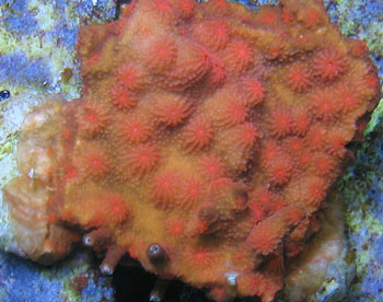 Blood Red Cyphastrea Reeffarmers Seed Colony. Note the intricate