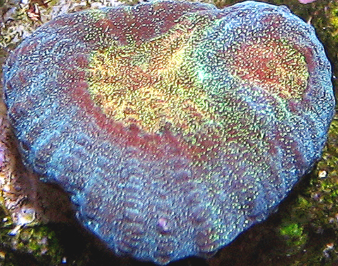 Steve Tyree is maintaining a seed section of this coral for Reeffarmers.com in a 130 gallon Raceway Gyre BiZonal system. This system is naturally filtered with a semi-cryptic zone and a reef flat exposed zone. In Steve's captive reef the coral is positioned to receive moderate to weak light levels from a 400 watt 20,000 K Radium metal halide. The price of this coral per small fragment consisting of a single polyp will be determined by the first edition auction below.