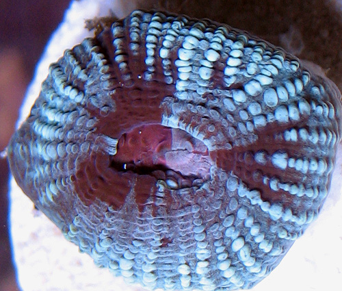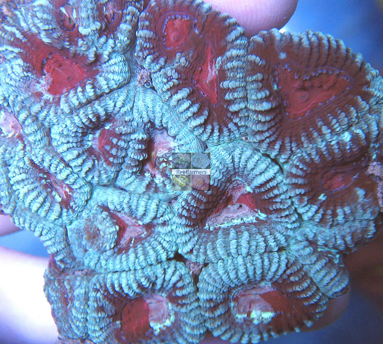 Reeffarmers acquired our seed of this coral directly from The Mystic Reef in September of 2010. Jeremy and Adam had been growing the coral in captivity for 10 months. They believe that is possibly came from Vanuatu. The coral developed its bright blueberry and red coloration in low light. It seems to react positively to feedings and the polyps expand and get puffy. They also maintain the coral within weak water currents.