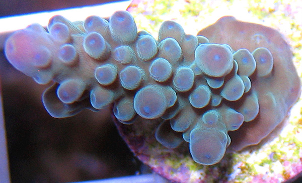Steve Tyree is maintaining a seed section of this coral for Reeffarmers.com in a 130 gallon Raceway Gyre BiZonal system. This system is naturally filtered with a semi-cryptic zone and a reef flat exposed zone. In Steve's captive reef the coral is positioned to receive moderate light levels from a 400 watt 20,000 K Radium metal halide. The first edition fragment of this coral is being sold as a Buy It Now. Introductory price based on past sales was set at $75 for the small single branching first edition fragment.