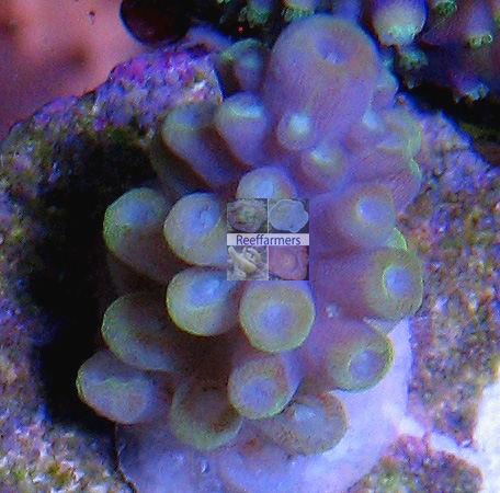 Steve Tyree is maintaining a seed section of this coral for Reeffarmers.com in a 130 gallon Raceway Gyre BiZonal system. This system is naturally filtered with a semi-cryptic zone and a reef flat exposed zone. In Steve's captive reef the coral is positioned to receive strong light levels from a 400 watt 20,000 K Radium metal halide. The first edition fragment of this coral was sold as a Buy It Now. Introductory price was $75 for the small single branching first edition fragment.