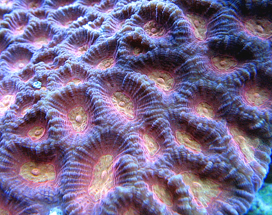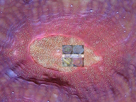 Steve Tyree is maintaining a seed section of this coral for Reeffarmers.com in a 130 gallon Raceway Gyre BiZonal system. This system is naturally filtered with a semi-cryptic zone and a reef flat exposed zone. In Steve's captive reef the coral is positioned to receive weak light levels from a 400 watt 20,000 K Radium metal halide. Water current is moderate to strong. The first edition fragment of this coral was sold to private collector Chad Trambaugh. Suggested retail for this coral in late July 2011 was $75.00 per two small corallites.
