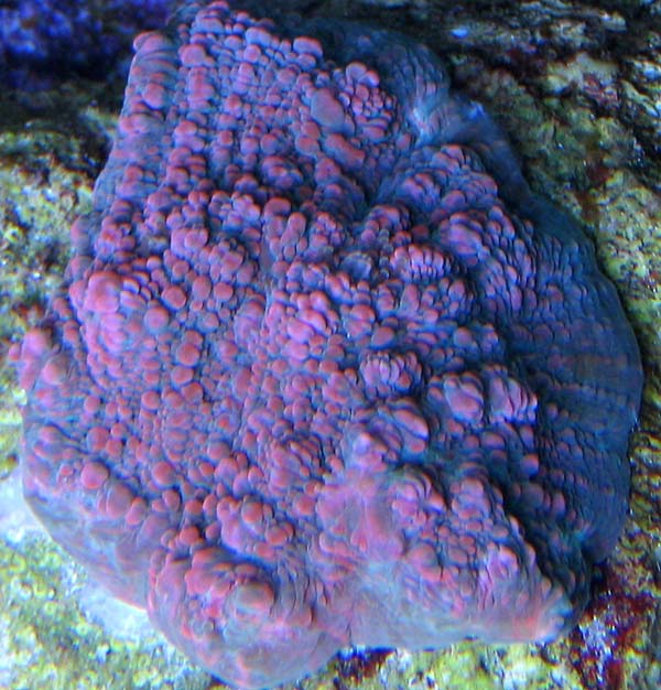 Note greater amounts of pink pigmentation. Polyp mouths are difficult to find and do not have orangish pigments.