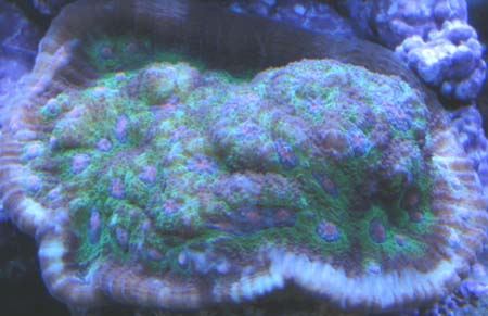 corallite has blue and violet pigments. The center of the inner corallite areas contain one