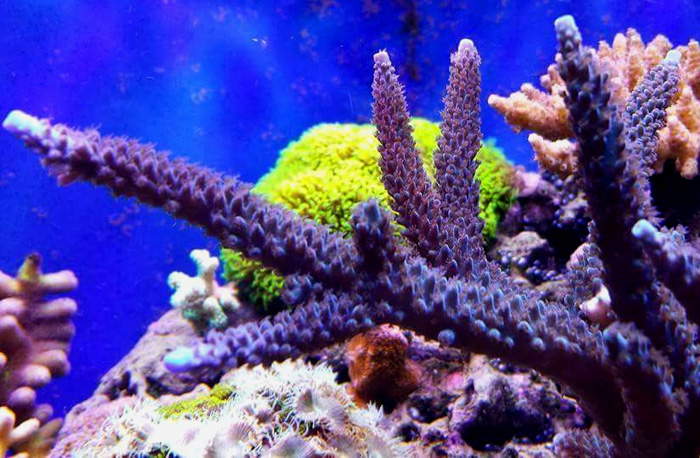 Back in the late 1990's there was a brief period when stony corals were exported from the Samoan Islands. We believe this stag may be one of those as it traces its captive history origin back to around the 1997 to 2000 time frame. The current lineage of this stag is traced back to a section harvested from the Leng Sy main display tank at the end of 2001. This tank had also housed the original Leng Sy Montipora coral. Leng harvested the fragment and gave it to his understudy Cruz Arias who is the same reef aquarist that kept the original Leng Sy Montipora line alive.