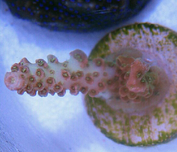 Reeffarmers is maintaining a seed section of this coral in a 8 foot Raceway Gyre BiZonal system. This system is naturally filtered with a semi-cryptic zone and a reef flat exposed zone. In this captive reef the coral is positioned to receive moderate light and weak water current. The first edition fragment of this coral was auctioned by Law Office Aquariums 11/18/17-11/19/17. The auction occurred in the Facebook groupOfficial SPS Frag Swap Page. Final auction price was $100.