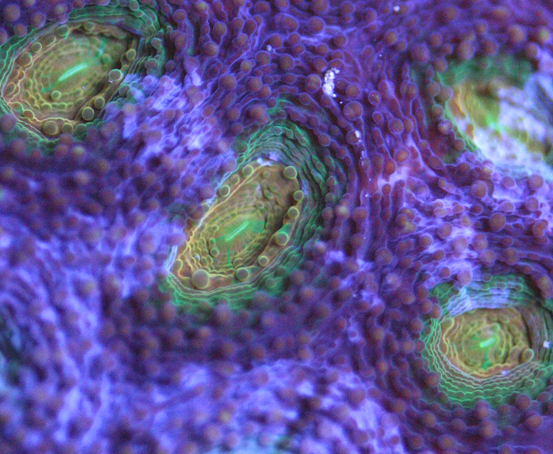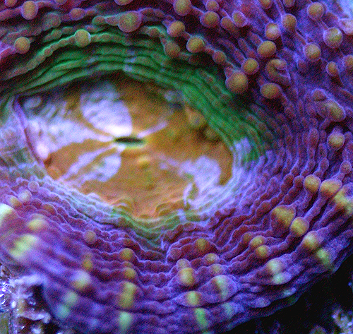 The Mardi Gras Mambo coral was named by Seth and Angelle of Coral Fever. They acquired this coral from wholesaler/importer Route 66 back in April of 2011. This coral was actually cherry picked from a WYSIWYG page. Its colors reminded Seth and Angelle of the Mardi Gras festivals that occur within their beloved home town state of Louisiana. Reeffarmers acquired this coral directly from Coral Fever while we were driving to Florida for the 2011 SE-CFM coral show.