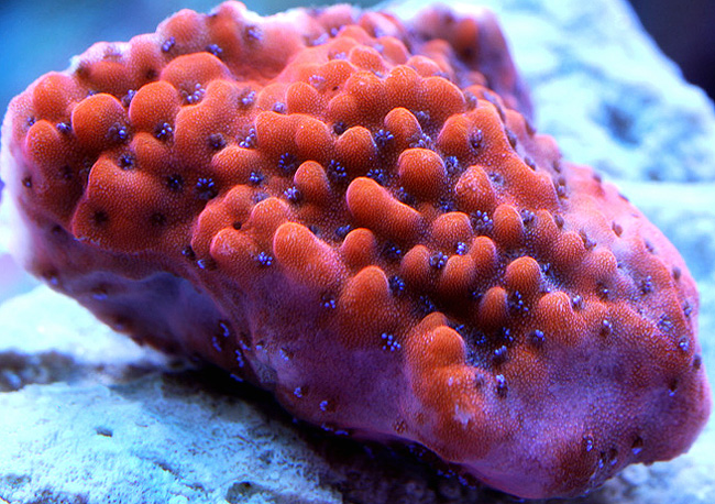The coral develops a base orange pigmentation when healthy. The color and characteristics