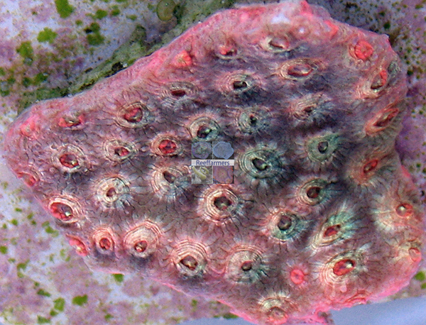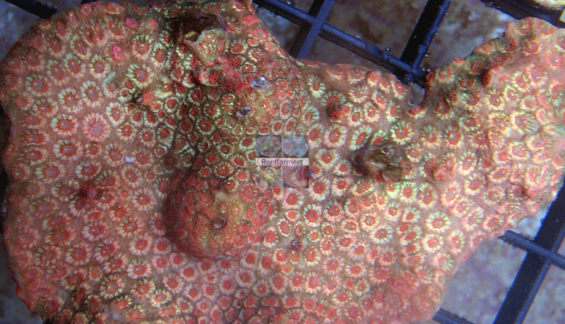 Steve Tyree is maintaining a seed section of this coral for Reeffarmers.com in a 130 gallon Raceway Gyre BiZonal system. This system is naturally filtered with a semi-cryptic zone and a reef flat exposed zone. In Steve's captive reef the coral is positioned to receive moderate to weak light levels from a 400 watt 20,000 K Radium metal halide. The first edition fragment of this coral was sold at the 2012 DA-CFM coral show to a professional grower.