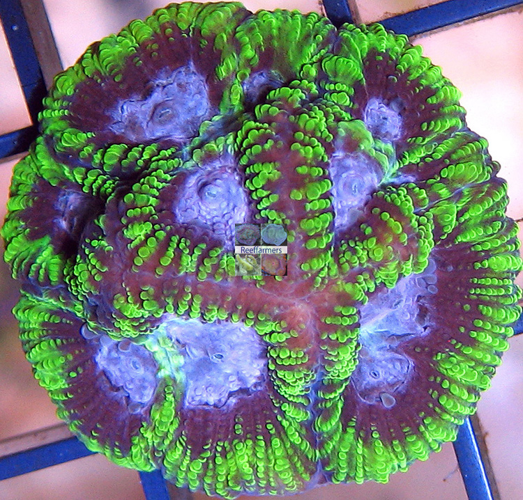 This coral was named by Alex Agrusa who originally acquired the coral from Michelle Todoverto. We do not exactly know where Michelle had acquired the coral from originally. Alex kept the coral for about a year before distributing any fragments. He named it as his version (Raptors) of the original Peace Coral which was distributed back in 2006. That Peace Coral was a Favites and its names was related to its basic color pattern. The original Peace Coral had corallites that were pink and coral ridges that were green. That was the opposite of the War Coral, which was red with green centers. Thus it was called the Peace Coral. The original Peace Coral was difficult to keep at that time and most reef aquarist lost their seeds. Reeffarmers retired our Peace Coral LE in 2008 due to a loss of our seed.