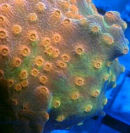 Reeffarmers is maintaining a seed section of this coral in a 8 foot Raceway Gyre BiZonal system. This system is naturally filtered with a semi-cryptic zone and a reef flat exposed zone. In this captive reef the coral is positioned to receive weak moderate light and moderate to strong water current. The first edition fragment of this coral was sold at the 2015 Reef Currents event in Houston to Matt Murphy. Recommended list price on February 20th 2015 is $75.00 for a medium fragment.