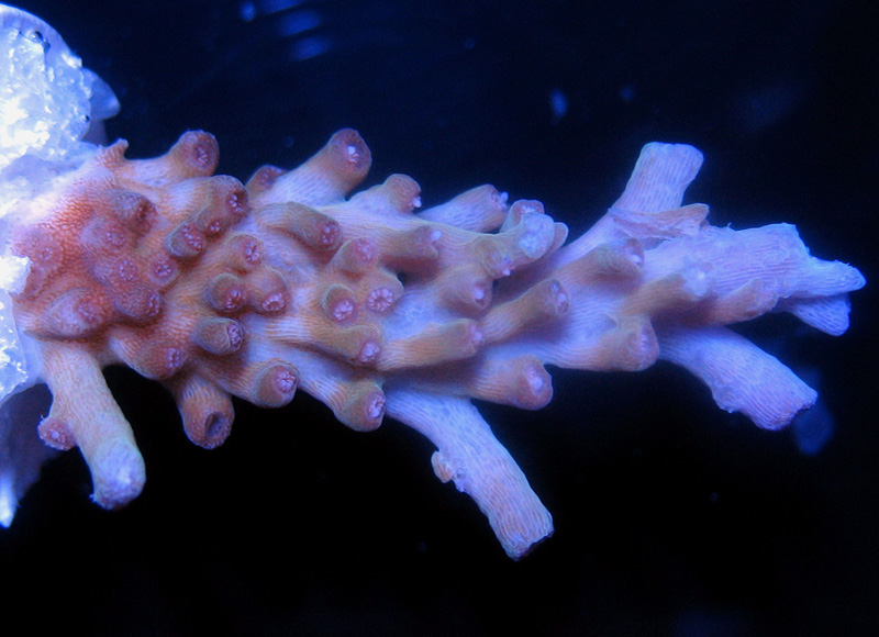 Reeffarmers is maintaining a seed section of this coral in a 8 foot Raceway Gyre BiZonal system. This system is naturally filtered with a semi-cryptic zone and a reef flat exposed zone. In this captive reef the coral is positioned to receive moderate light and moderate to weak water current. The first edition fragment of this coral was sold on our Buy It Now Web Page. Recommended list price on May 28th 2015 was $145 for a medium sized fragment.