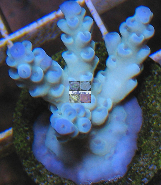 Steve Tyree is maintaining a seed section of this coral for Reeffarmers.com in a 130 gallon Raceway Gyre BiZonal system. This system is naturally filtered with a semi-cryptic zone and a reef flat exposed zone. In Steve's captive reef the coral is positioned to receive moderate to strong light levels from a 400 watt 20,000 K Radium metal halide. Water current is moderate. The first edition fragment was sold as a Buy It Now for the introductory price of $70.