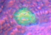 Its overall distinctive coloration is enough to make this a visually stunning coral. A more detailed examination of the bright green corallites reveals that there are dots of color that appear to have been splashed on the green (see closeup images below). Without a doubt this pigmentation represented a whole new realm of coloration for SPS corals. The early echinophyllia corals with trim coloration and brightly colored corallites were referred to as 'Alien Eye' corals. This began with the Tubs (John Susbilla) Alien Eye Echinophyllia echinoporides. Alien eye refers to the strange eye-like look that the corallites can exhibit when the polyps mouths are open (see images below).