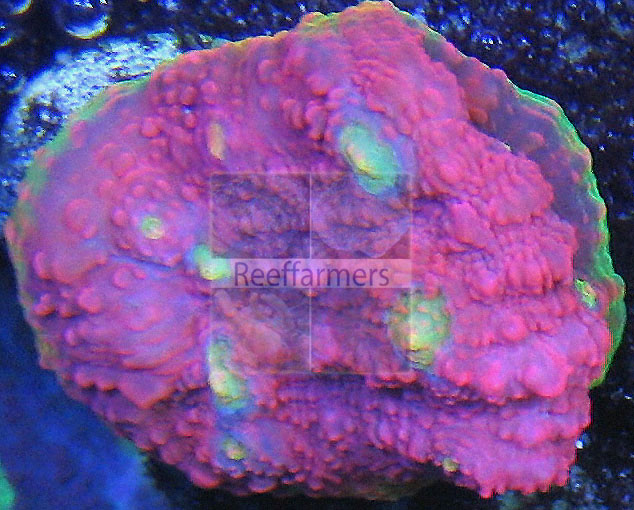 Steve Tyree is maintaining a seed section of this coral for Reeffarmers.com in a 130 gallon Raceway Gyre BiZonal system. This system is naturally filtered with a semi-cryptic zone and a reef flat exposed zone. In Steve's captive reef the coral is positoned to recieve moderate to weak light under a 400 watt 20,000 K Radium Metal Halide. Limited Edition Reservation price is currently $170 per small sized fragment.