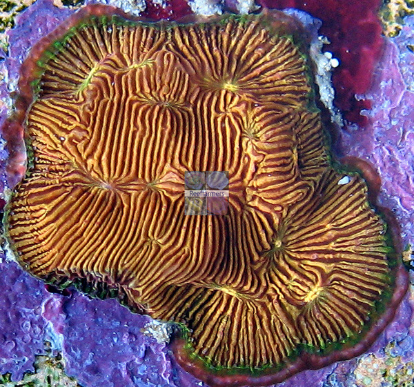 Steve Tyree is maintaining a seed section of this coral for Reeffarmers.com in a 130 gallon Raceway Gyre BiZonal system. This system is naturally filtered with a semi-cryptic zone and a reef flat exposed zone. In Steve's captive reef the coral is positioned to receive weak to very weak light levels from a 400 watt 20,000 K Radium metal halide. The price of this coral is $90 per small fragment. The first edition fragment was delivered to private collector Gunter Adkins.