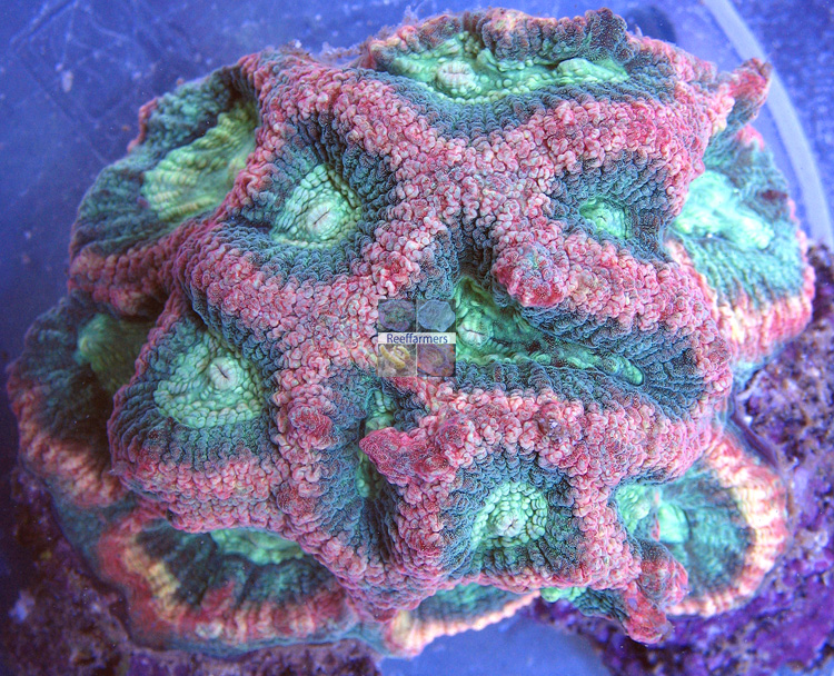 Steve Tyree is maintaining a seed section of this coral for Reeffarmers.com in a 130 gallon Raceway Gyre BiZonal system. This system is naturally filtered with a semi-cryptic zone and a reef flat exposed zone. In Steve's captive reef the coral is positioned to receive moderate to weak light levels from a 400 watt 20,000 K Radium metal halide. The price of this coral per small fragment consisting of a single large polyp will be determined in part by the first edition live auction that will occur in Orlando Florida during the 2011 SouthEastern Coral Farmers Marker (SE-CFM) on May 29th 2011.