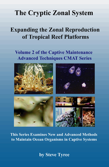 Volume 2 of the CMAT or Captive Maintenance Advanced Techniques series is titled "The Cryptic Zonal System - Expanding the Zonal Reproduction of Tropical Reef Platforms". It has been 14 years since Steve Tyree has written and released a new book. Since then the tools available for research and writing have vastly expanded. We think everyone will agree that this new eBook is worth the wait. After reading this book you will understand tropical reef platforms, like you have never understood them before. The book is an operational manual for a complete 100 % natural filtration system that mimics all the new natural processes that science has recently discovered occurring on natural reef platforms. If you are new to the cryptic sponge based filtration system, this book will literally turn your understanding of tropical reefs upside down. This volume 2 book contains 422 pages, has a color plate section with 62 digital images, with ~120,000 words, includes 107 tables and 57 figures. PDF File size is 12.4 MBytes. It contains 15 years of personal research by Steve Tyree and numerous short quotations from related published scientific papers. Retail price for PDF downloadable version is just $14.99. Click on the image below to access our full eContent purchase page. This new book is listed as CMAT Volume 2.