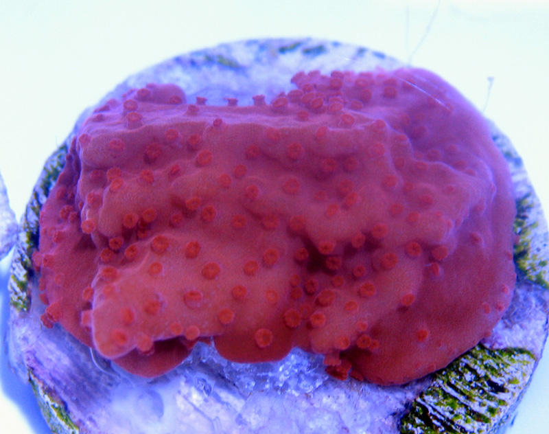 Our system is naturally filtered with a semi-cryptic zone and a reef flat exposed zone. In this captive reef the coral is positioned to receive moderate to weak light and moderate to strong water current. The first edition fragment of this coral was sold to a private customer. Recommended list price on March 10th 2015 was $80 for a small fragment.